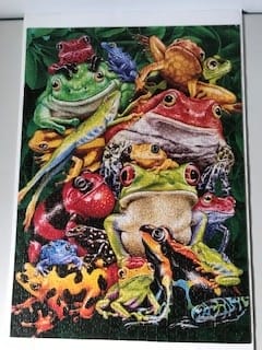 What kind of funny Frog Business is going on here? Brilliant colours of green, yellow, red, and blue are stacked on top of each other in this delightful frog puzzle.