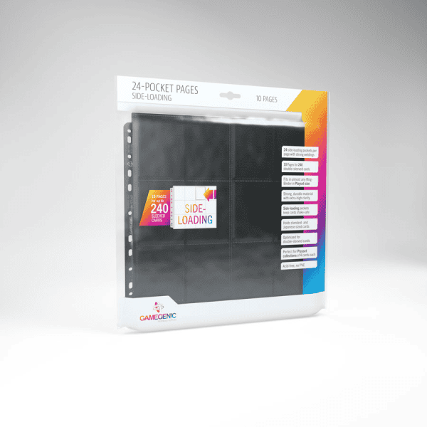 Secure protection for standard- and Japanese-sized cards. These collector pages in vibrant colors provide 24 side-loading pockets that will protect even double-sleeved cards perfectly. Due to the versatile 11-hole spine these pages fit in almost all ring-binders in Playset-size. Perfect together with the Prime Playset Ring-Binder.