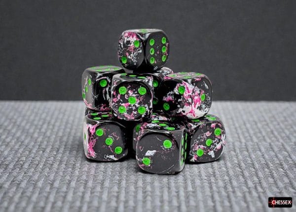 Each set contains 12 Brushâ„¢ 16mm d6 dice in Display Case w/Lid and Foam Square.