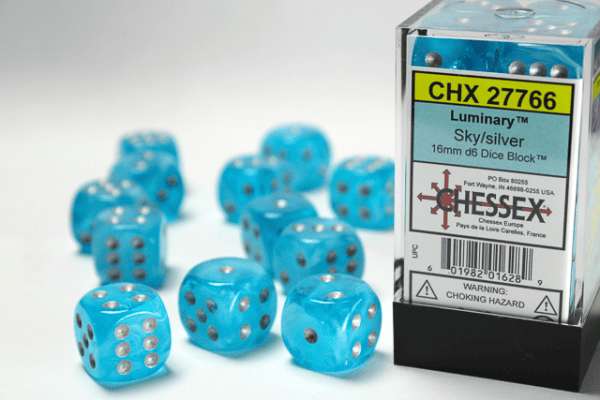 12d6 Dice Block (16mm): Luminary (Assorted Colours) Sky w/ Silver