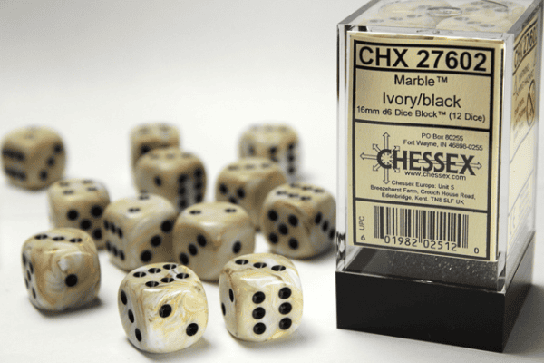 12d6 Dice Block (16mm): Marble (Assorted Colours)