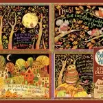 Cute scenes of woodland creatures and trick o treaters making their rounds are highlighted with thoughtful quotes like “Trust that everything is unfolding as it should.” The bright autumn colours of yellow and orange stand out against the black background making each scene pop. We’re confident this Easy Handling 275 piece puzzle, by artist Debi Hron, will be a popular puzzle amongst puzzlers of all skill levels.