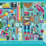 There are often lots of goodies to be discovered including a spaceship, ray gun, dinosaur, and a key that unlocks … What could it possibly unlock? Something magical, we’re sure of it! And we bet the information is stored on the floppy disk. Get your abacus out and start tallying up all the cool things you’ll find in this delightful puzzle of discoveries.