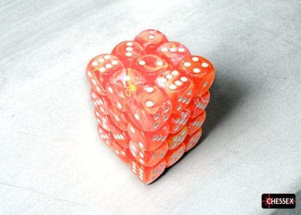 Block of 36 6-sided 12mm Dice with a easy to store container. Comes in various colors and hues! Add a splash of custom color to your game!