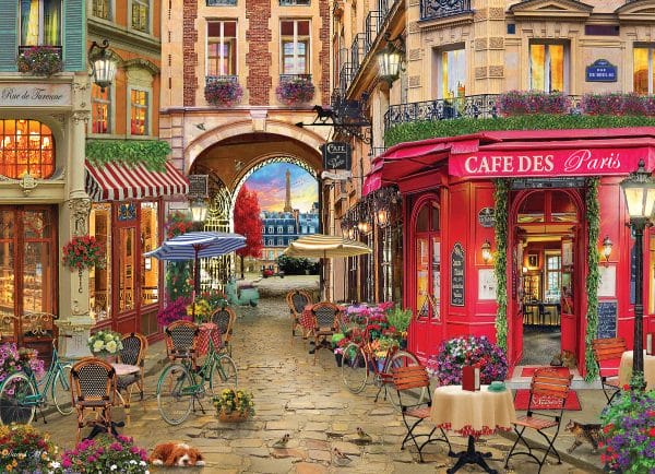 Café des Paris is open to early birds, but don’t expect the dog to join. Enjoy a scenic view of the Eifel Tower as you meander the cobblestone streets of France in this lovely 500 piece puzzle.