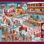 Feel the joy of kids delighting in decorating their snowman. Dogs and rabbits zip across the snow, hedgehogs investigate the empty planters, but a watchful cat has its eye on the birds. Coloured in pastels, this scene brims with joy and innocence. Lucy Grossman enjoys painting gardens and the countryside, and this 500 piece puzzle captures the essence of her love for the wild.