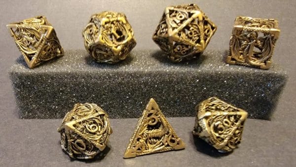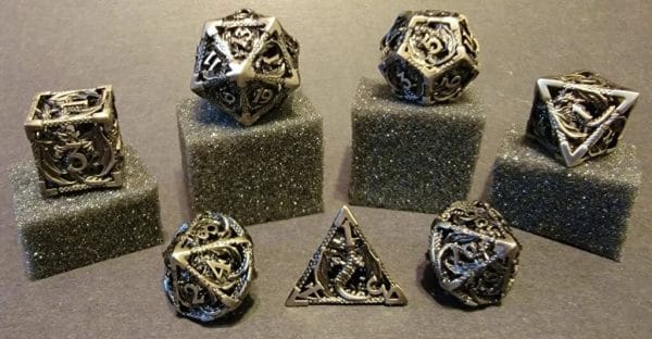 7 Piece Polyhedral Dice Set. For Dungeons & Dragons (D&D), Pathfinder, and other popular TTPRGS. Hollow Metal