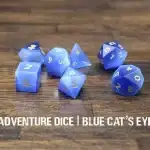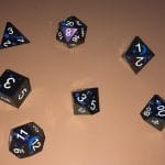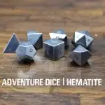 Hematite premium gemstone dice set is made from hematite stone, a shiny black-grey-silver stone, with the numbers engraved on the side.