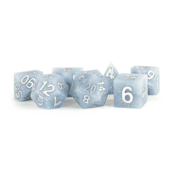 Sharp Edge Silicone Rubber dice are fun and unique to roll.  Sharp edges provide a precise roll that is complemented with the slight bounce of silicone.  Each full-sized, 16mm set comes with 7 dice (d4, d6, d8, d10, d10% (00-90), d12, and d20).