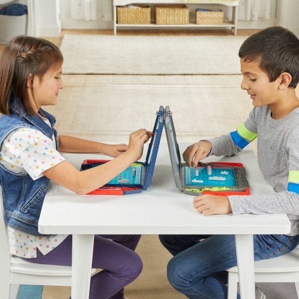 This Battleship board game is the classic game of naval combat that brings together competition, strategy, and excitement! In head-to-head battle, 2 players search for the enemy’s fleet of ships and destroys them one by one. With convenient portable battle cases and realistic looking naval crafts, the Battleship game puts players right in the middle of the action. Players command a powerful fleet that includes an aircraft carrier, a destroyer, a submarine, a patrol boat, and a battleship. Each player announces the coordinates of each strike and sees if it hits. Position ships strategically to survive an opponent’s relentless strikes, and track hits and misses with red and white pegs on the ocean grid. No ship is safe in this game of stealth and suspense. It’s a fun indoor activity for kids ages 7 and up, and it’s easy to pack up and take on the go.