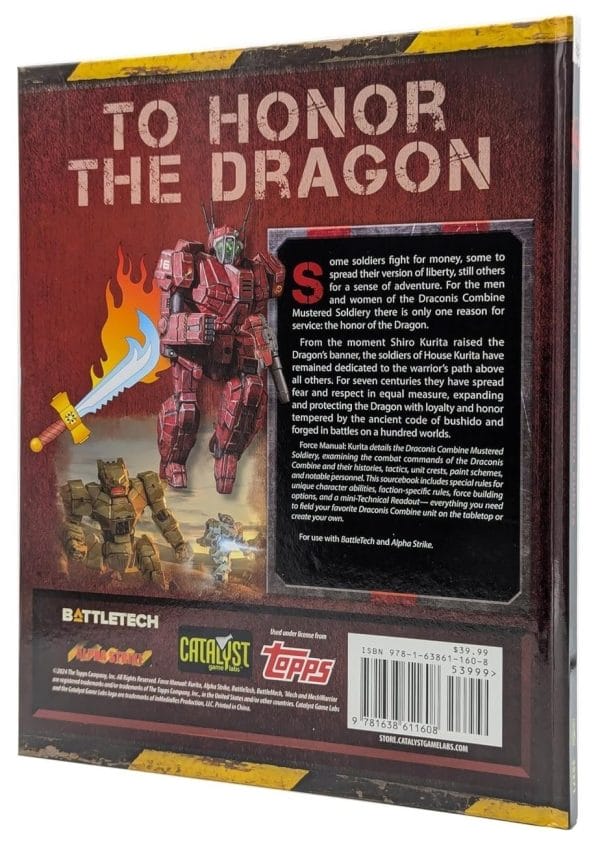BattleTech Combat Manual: Kurita contains information on these warriors. This manual examines the combat commands of the Draconis Combine, detailing their histories, tactics, unit crests, paint schemes, and notable personnel. This Alpha Strike expansion includes special rules for unique character abilities, faction-specific rules, force-building, and a mini-Technical Readout–everything you need to field your favorite Draconis Combine unit on the tabletop, or create your own.