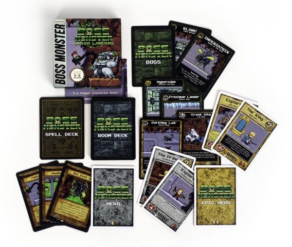 Crash Landing introduces an all new treasure type, new heroes, new Bosses, and new rooms powered by alien monsters and technological traps never before seen in the world of Boss Monster!