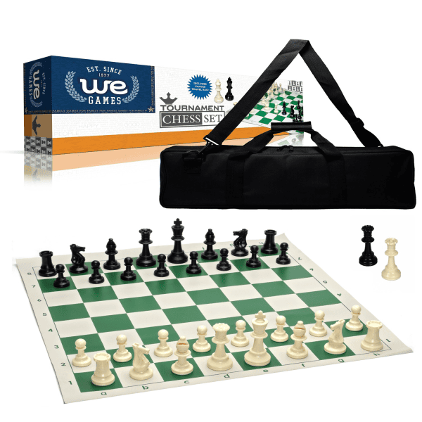 Chess Set – Tournament with Plastic Pieces and Green Roll-up Board and Travel Canvas Bag