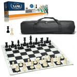 This roll up board is made of a sturdy vinyl that will endure years of tournament and practice play and includes easy-to-read algebraic notation. The chessmen are crafted of double weighted plastic. You will see people playing on this style of set in parks across the world.