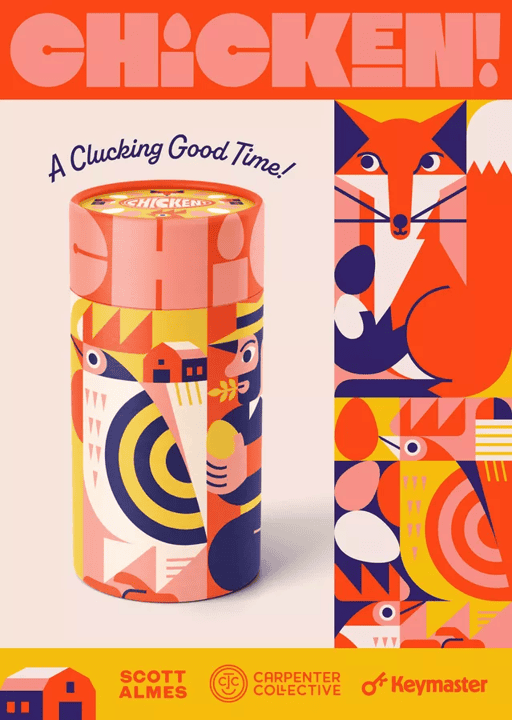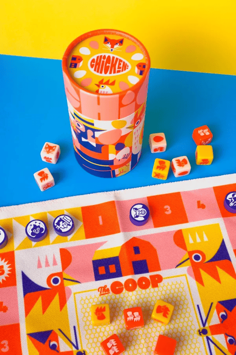 Pop open the tube and start chucking dice with family and friends! In Chicken!, players will be rolling dice each turn—pressing their luck to score more Chickens while avoiding those foxes.