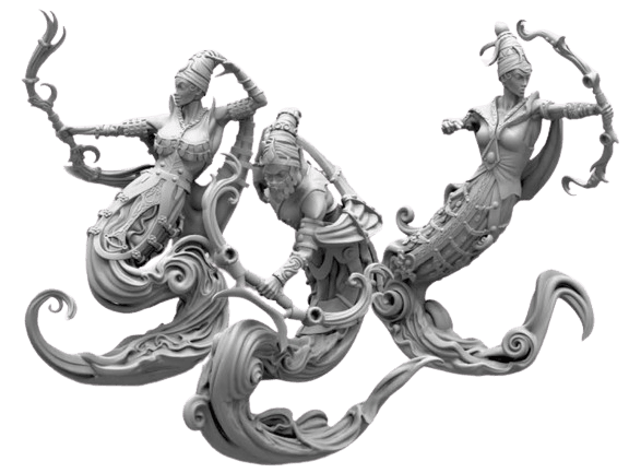 The price for the powerful primordial warriors is high, for they are masters of whatever craft they choose to follow. The Windborn Djinn slay their foes from afar with deadly accurate volleys, while the Steelheart Djinn can be found in the heart of combat, their speed and grace lending deadly power to their elegant weaponry as they carve their way through even the most heavily armored foes. How they Play: Powerful elemental beings, the Djinn embody the free flow of the Court of Air carrying the sorcerous prowess of Air Spellcasters to the furthest corners of the battlefield. Upon their deaths their souls feed the Sorcerous Rituals of Air returning them back to the aether from which they came. Make sure to include Windborne Djinn for accurate, armor piercing long ranged support and Steelheart Djinn for quality, close combat prowess!