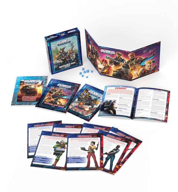 The G.I. JOE Roleplaying Game Beginner Box includes everything you need to get started in the action-packed world of G.I. JOE. You and your friends embody heroes ranging from tank driver Steeler to determined investigator Sherlock—some of the best, brightest, and most courageous folks to join their ranks and stop the global menace of COBRA!