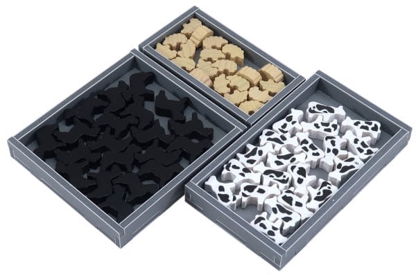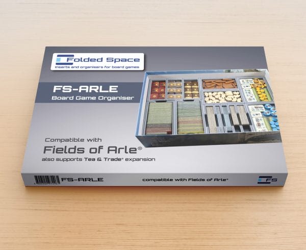 Insert compatible with Fields of Arle® and the Tea & Trade® expansion. The design provides both efficient storage and improved game play. Many of the trays can be utilised during the game, and they greatly aid set-up and clear-away times. The rule books and boards act as a lid on top of the trays. The insert is arranged in up to three layers.