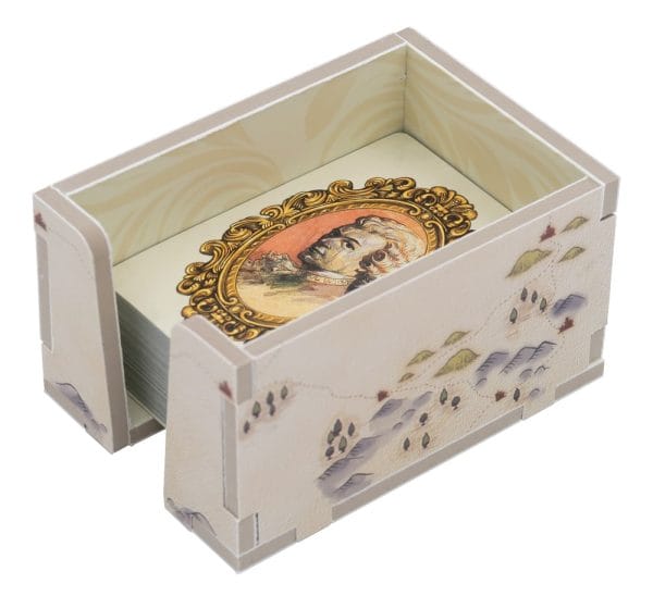 The trays are arranged in up to two layers as shown. All the trays feature a full colour print, inside and out. There is space for all cards to be sleeved with quality sleeves.