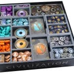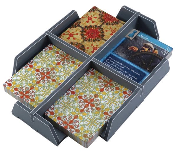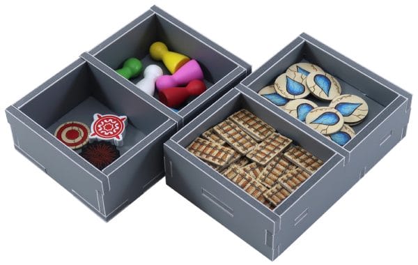 All component types are split by type and there is space for the cards to be sleeved. The two token trays with raised bases can be used either right way up or upside down depending on the tokens in the game.