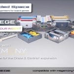 The design provides both efficient storage and improved game play. Many of the trays can be utilized during the game, and they greatly aid set-up and clear-away times. The rules and boards act as a lid on top of the trays.