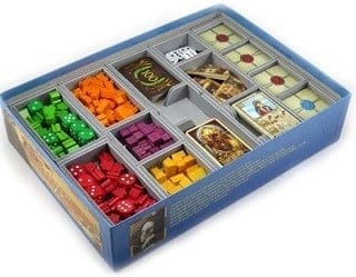 This insert is designed to be compatible with The Voyages of Marco Polo®. The insert has space for both the “The New Characters” mini expansion® and “The Agents of Venice”® expansion. The design provides both efficient storage and improved game play. Many of the trays can be utilised during the game, and they greatly aid set-up and clear-away times. The boards and player boards act as a lid on top of the trays.