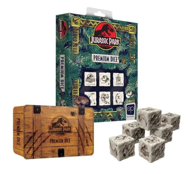 This fossil-textured, 6-sided dice set features iconic imagery from the classic 90s sci-fi blockbuster and comes with a collectible crate-style tin carrying case.