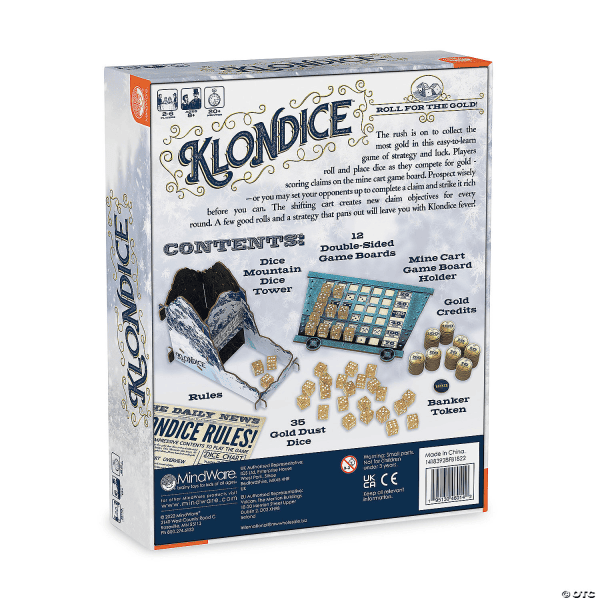 Roll for the gold in this easy-to-learn game of strategy and luck. Players compete for gold but must beware: one false move could set opponents up for success. A shifting cart changes up the claim objectives for each round in this exciting game where a few good rolls and a strategy that pans out will leave everyone with Klondice fever!