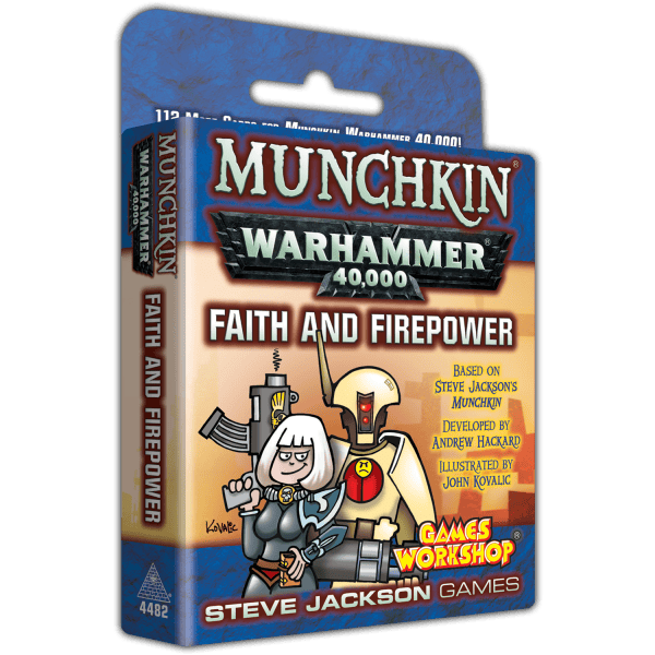 Expand your battles with Munchkin Warhammer 40,000: Faith and Firepower! This 112-card set includes two new Armies for your Munchkin Warhammer 40,000 game. The Sisters of Battle are some of the most elite Imperial soldiers around, and the T’au make terrifying enemies . . . or stalwart allies in the war against Chaos. Plus lots of new loot and horrible monsters to fight!