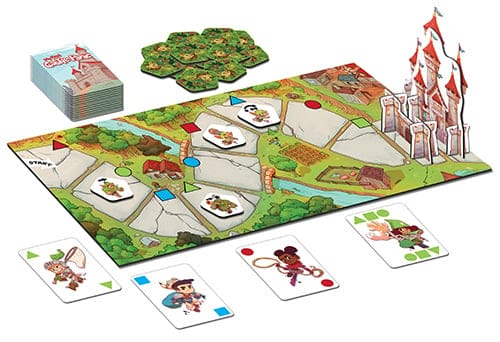 My First Castle Panic, like its predecessor Castle Panic, is a co-operative game in which players work together to defend their castle, but this game removes the reading requirement of the earlier one and fosters the development of educational skills, such as identifying colors and shapes, problem solving, and turn taking.