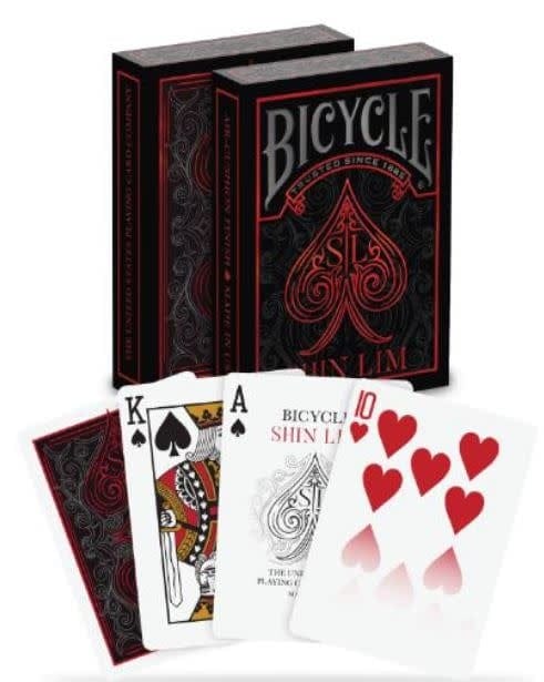 Bicycle and Shin Lim make some magic together in this beautiful, co designed deck. Bicycle Shin Lim is a playable deck of cards, with a faded 10 of hearts that will help enthusiasts perform a trick that Shin Lim will teach you how to do.