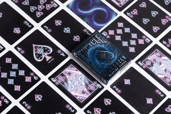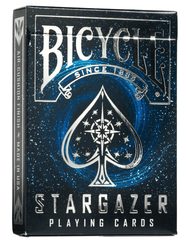 Get Lost in space with this beautifully Illustrated deck of cards. Bicycle playing cards stargazer features designs and colors inspired by one of the most mysterious and awesome objects in the Galaxy, the black hole. The tuck box brings the brilliance of the stars to life with the use of reflective silver foil. Great for any game, you will love playing with this deck hand after hand.