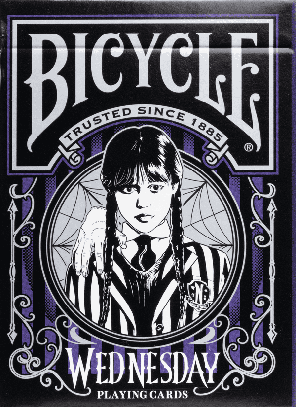 Inspired by the hit Netflix series starring Jenna Ortega as Wednesday Addams; your next card game is all-in for the thrilling dance with the macabre as you shuffle through the inky black cards featuring fan-favorite characters from the show.