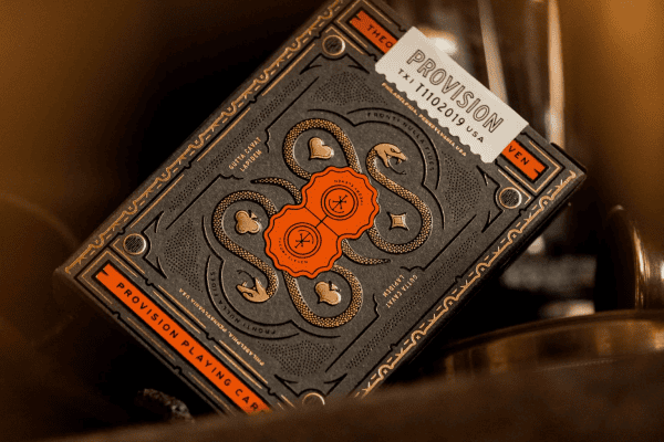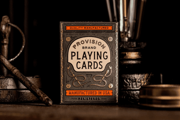 Illustrated by hand in Philadelphia, Provisions are 100% Made in America. Every aspect of the design was created from scratch – from the court cards to the aces, packaging, and vintage tax stamp seal. Even the inside of the box shines with gold foil.