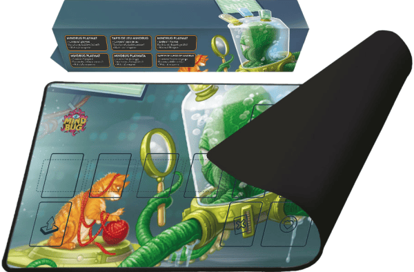 Each Mindbug Playmat features an original art piece printed atop a high-quality, slip-resistant rubber base. The double-stitched edge will keep the playmat going for many battles to come without fear of the opposition.
