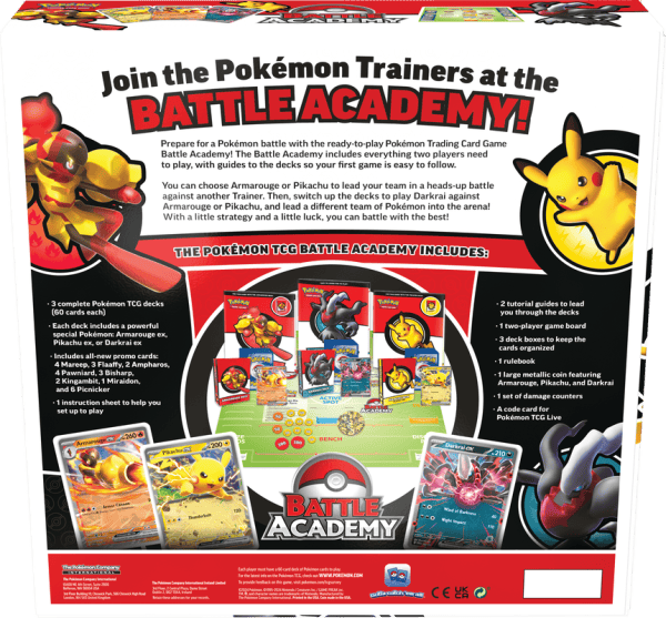Prepare for a Pokémon battle with the ready-to-play Pokémon Trading Card Game Battle Academy! The Battle Academy includes everything two players