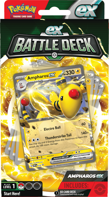 Powerful Pokémon ex are ready to charge onto the battlefield in the new Pokémon TCG: ex Battle Decks! Each 60-card deck is led by an exceptional Pokémon ex and includes everything you need to play right away. Let the battle begin!