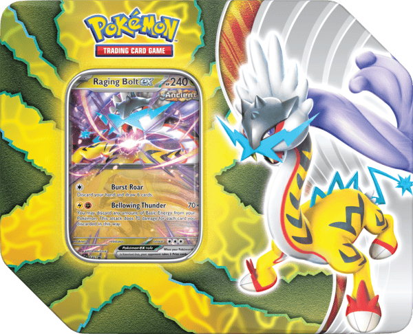 Gouging Fire ex and Raging Bolt ex show their primordial prowess, while the Future Pokémon Iron Boulder ex and Iron Crown ex demonstrate
