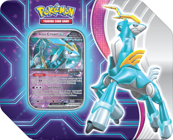 metallic mastery. In this Paradox Destinies Tin, you’ll find a promo card featuring one of these four Paradox Pokémon, additional allies to add