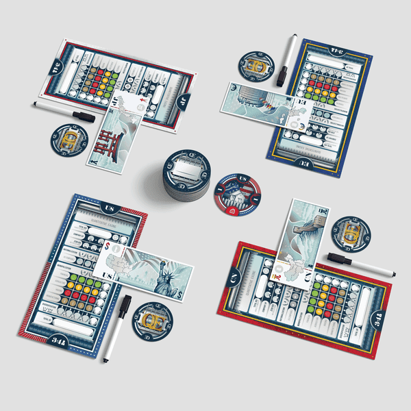 Player markers on the scoring track now reveal which player has the most victory points, but this is not the end. Players must now add up the amount of money they printed and the player who printed the most money loses all their victory points!