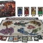 Two game boards offering three modes of play: two players can compete over Essos, three to five over Westros, or both boards can be combined for seven player games. There are 28 Character Cards which offer special abilities to their Houses; and other cards provide bonuses in battle or opportunities for victory points.