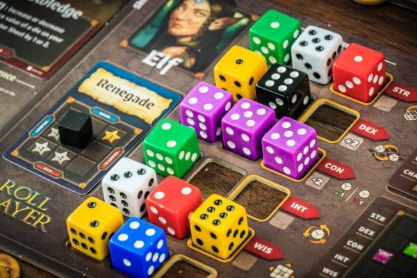 In Roll Player, you will compete to create the greatest fantasy adventurer who has ever lived, preparing your character to embark on an epic quest. Roll and draft dice to build up your characters attributes. Purchase weapons and armor to outfit your hero. Train to gain skills and discover your heros traits to prepare them for their journey. Earn Reputation Stars by constructing the perfect character. The player with the greatest Reputation wins the game and will surely triumph over whatever nefarious plot lies ahead!