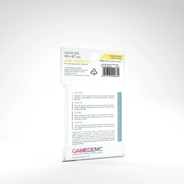 Sleeves – 44x67mm – GameGenic Prime – 50/pk (Mini American, Yellow)