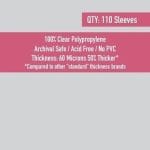 • Thicker Than Any Other “Standard” Sleeves  -Most “Standard” Sleeves are 40 microns thick, a few are even 50 microns.  Ours are 60-microns thick! That is 50% more than most!