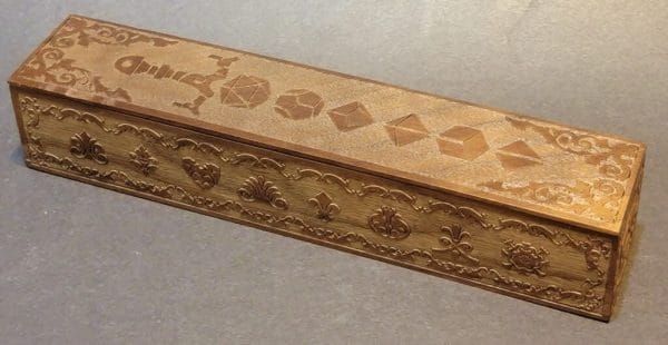 Sliding Top Wooden Dice Box – Long Sword