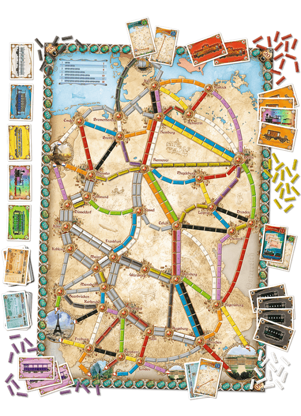 Discover ticket to ride: Germany, a new stand-alone board game in the Ticket to Ride series. Ticket to Ride: Germany introduces a new and exclusive Passengers rule. Additionally, the game includes short and long destination tickets to choose from, making Ticket to Ride: Germany a simple and elegant variant to the original game, with new challenges which will please newcomers and veterans alike.