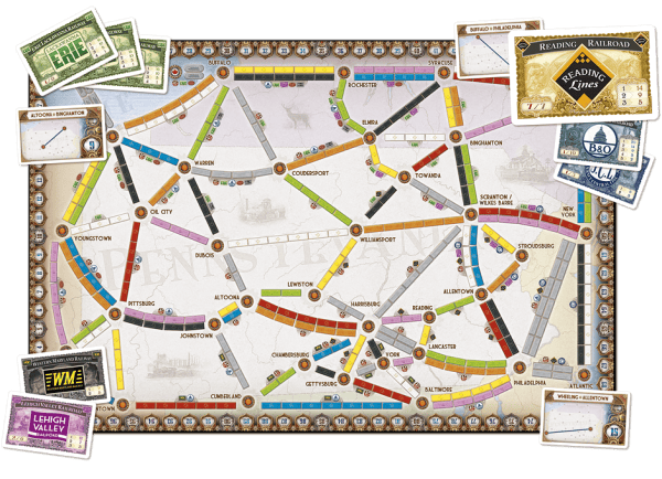 Also includes the Pennsylvania map in a state full of railroad history, invest in the most profitable companies to develop your rail network. But do not let your opponents outbid you, or you risk losing the benefits of your investments!