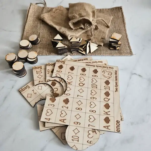 The beloved classic Sequence gets a makeover with this wooden travel board! Easily collapsible into 4 pieces and with a convenient bag all you’ll need is a deck of cards and you’ll be ready for hours of entertainment!