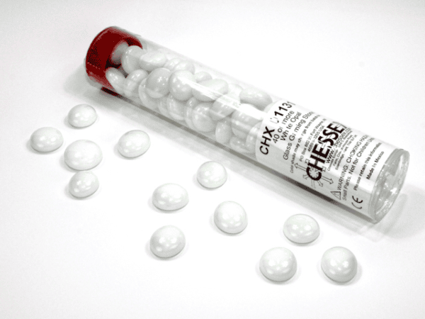 Translucent Crystal Glass Stones Qty 40 or more in 5½” Tube. Useful as counters or game tokens.