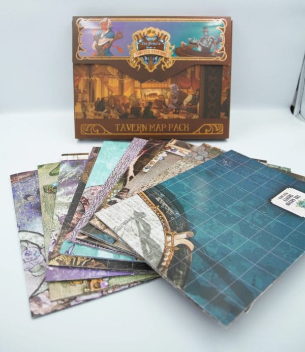 Inside, you’ll find 10 double-sided 30×30 inch maps featuring many of the Taverns described inside The Seekers Guide to Twisted Taverns hardcover. Each map will arrive in high quality poster paper, with full colour art. There will be no need to get the markers out and draw your surroundings with these ready to play maps!